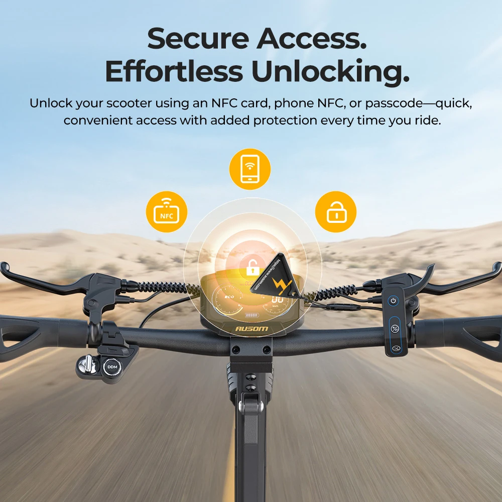 Un detaliu modern este sistemul de deblocare NFC, care adaugă un strat suplimentar de securitate. În loc să te bazezi doar pe un lacăt clasic, poți folosi cardul sau codul pentru a activa trotineta, ceea ce este mult mai convenabil în utilizarea zilnică. Într-un oraș aglomerat, unde lași trotineta în fața unui magazin sau la birou, acest sistem reduce riscul de utilizare neautorizată și îți oferă un plus de liniște.